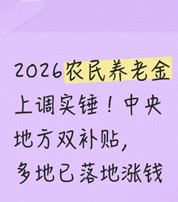 农民最终到手的养老金=中央基础养老金+地方补贴+个人账户养老金,2026年的上涨主要集中在前两部分,算法简单易懂,普通人也能算明白: